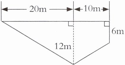 下部分三角形面积:$20×12÷2 = 120$(平方米)