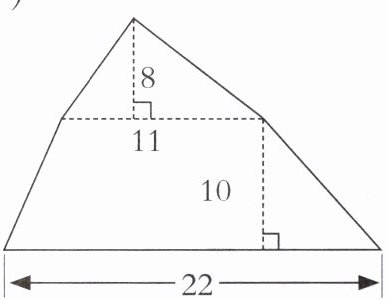 (2) $11×8÷2+(11+22)×10÷2=44+165=209$($cm^2$)