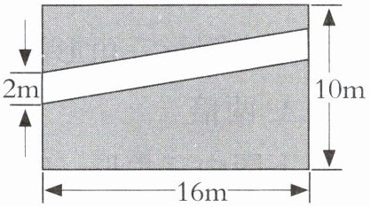 (3)有一块长方形草地(如下图),长是16m,宽是10m,中间铺了一条2m宽的石子路。种草部分的面积有多大?