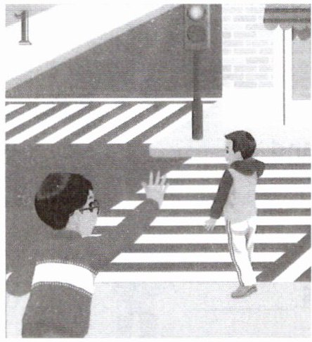 ( Wu Binbin 看到一个小男孩要闯红灯。)