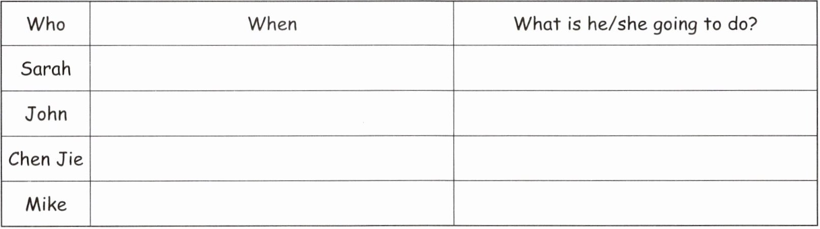 Ⅷ. Read and complete the table.(读一读,完成计划表。)