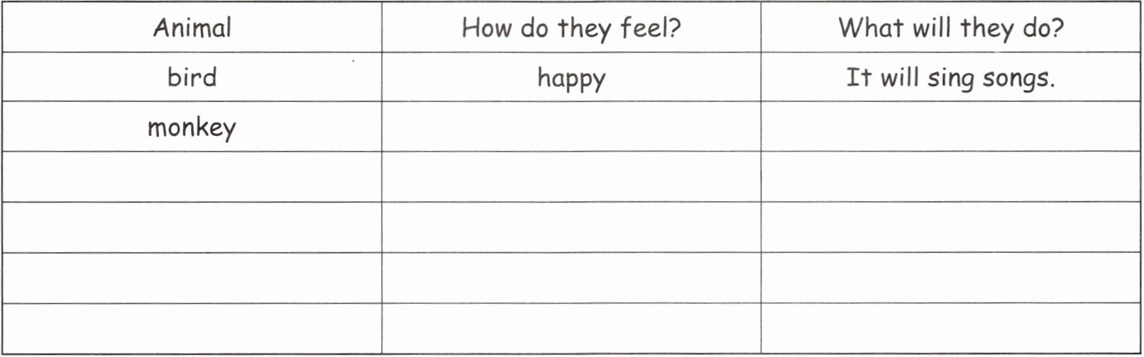 Ⅲ. Read and fill in the form. (同学们,你知道动物们也有情绪吗?让我们一起读一读,并填写表格吧!)