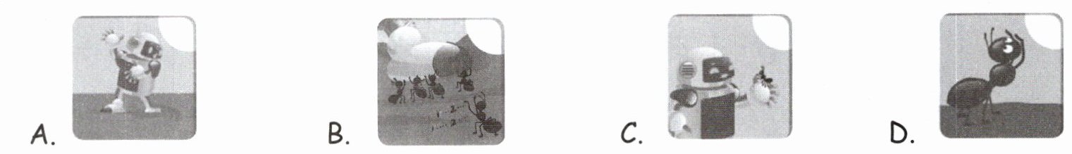 ) 2. The ant is afraid.(