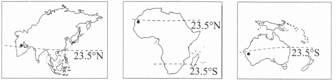 1. 上图3个大洲中,加点地区的气候类型均为(