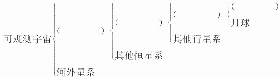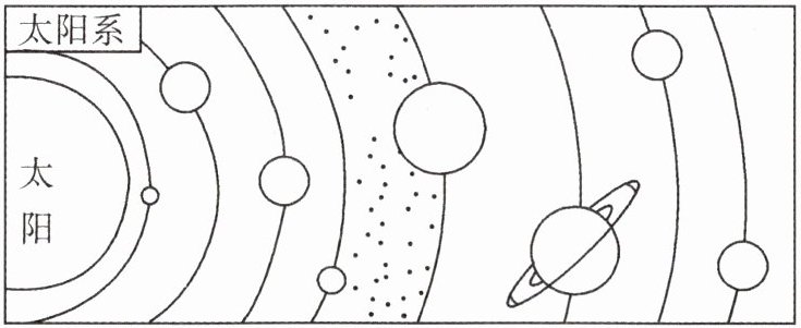 1. 在太阳系示意图中适当位置填写太阳系主要天体的名称。