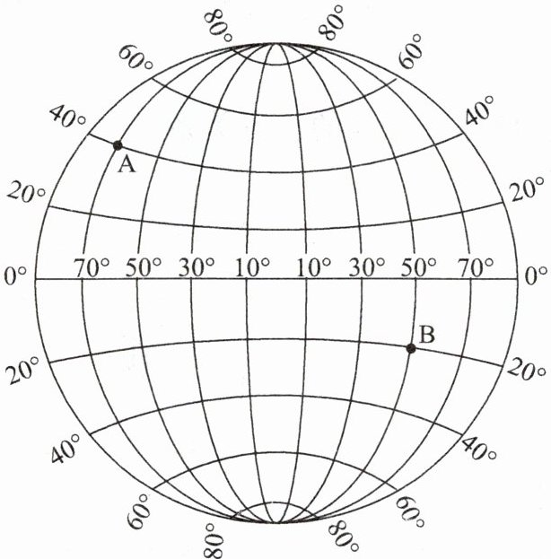 (1) 写出 A、B 两点的经纬度。