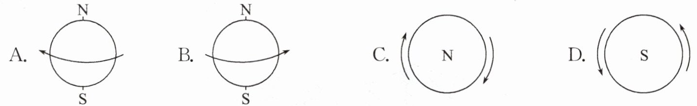 1. 下面四幅图中,正确表示地球自转方向的是(