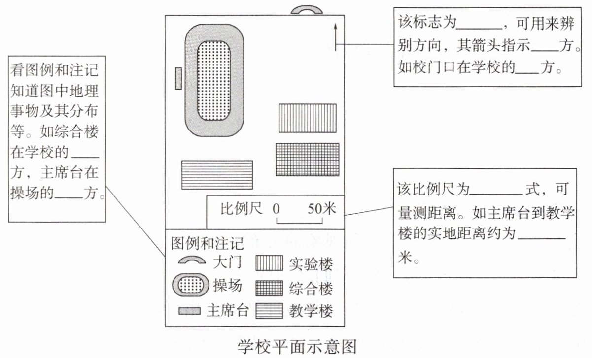 (2) 请尝试判断你所处的教学楼在学校大门的什么方向。