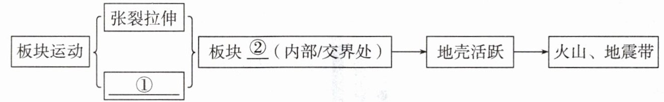 (4)通过实验,同学们尝试绘制板块运动思维导图,请将该图填写完整。