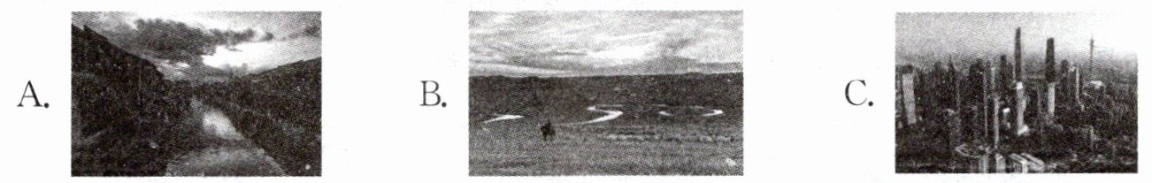 (2)下列景观图片能够反映图中主要聚落特征的是(