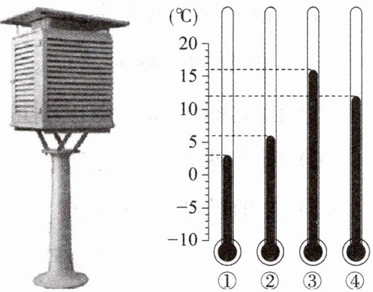 百叶箱是用来放置测定空气温度和湿度仪器的木箱。气温是地面气象观测中所要测定的常规要素之一。某地理兴趣小组某日开展了气温的测定和记录活动。下图示意百叶箱和测量结果。据此,完成 1~2 题。