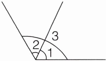 ① 如图,∠1= 65°,∠3= 120°。算一算,∠2的度数是多少?再量一量∠2的度数与计算的结果相同吗?