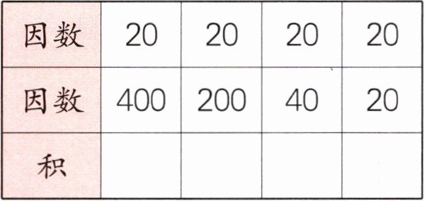 ②中第一个因数$20$不变,第二个因数依次除以$2$、除以$5$、除以$2$,积也应依次除以$2$、除以$5$、除以$2$。