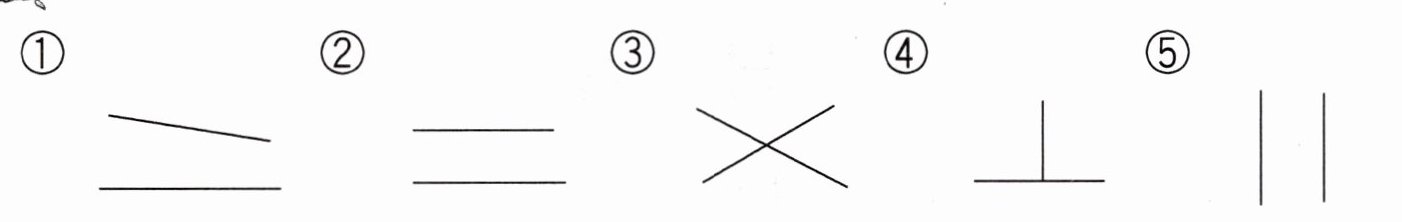 图⑤中两条直线无论怎样延长都不会相交,所以是平行线,应画“△”。