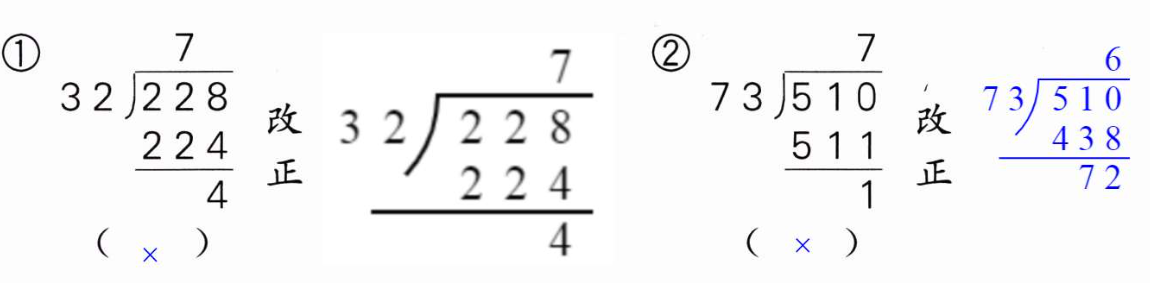 2 下面的计算正确吗?正确的在( )里画“√”;错误的画“×”,并改正。
