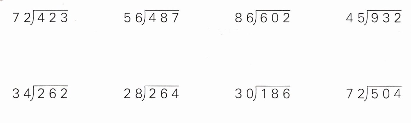 1. $423 ÷ 72 = 5\ldots\ldots 63$(或$5.875$),竖式如下: