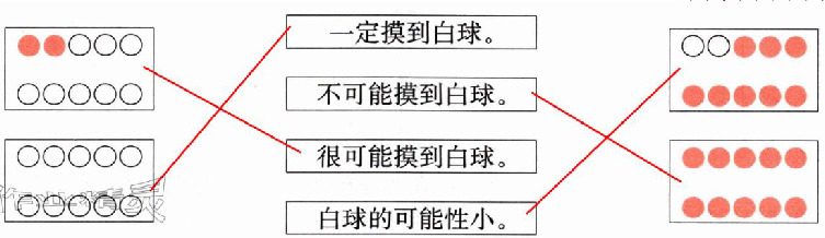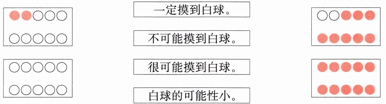 2 从盒子里摸出一个球,结果会是什么? 连一连。