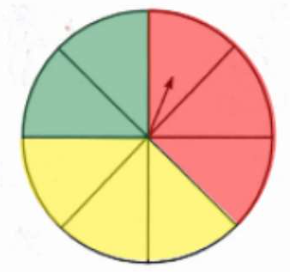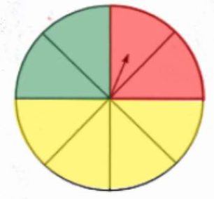② 指针可能停在红色、绿色或黄色区域,并且停在绿色区域的可能性最小。