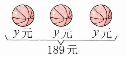 ③图中$3$个篮球,每个篮球$y$元,总价是$189$元。