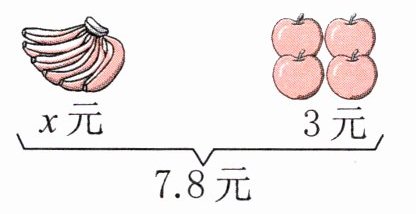 ①从图中可以看出,一串香蕉$x$元,$4$个苹果$3$元,它们的总价是$7.8$元。