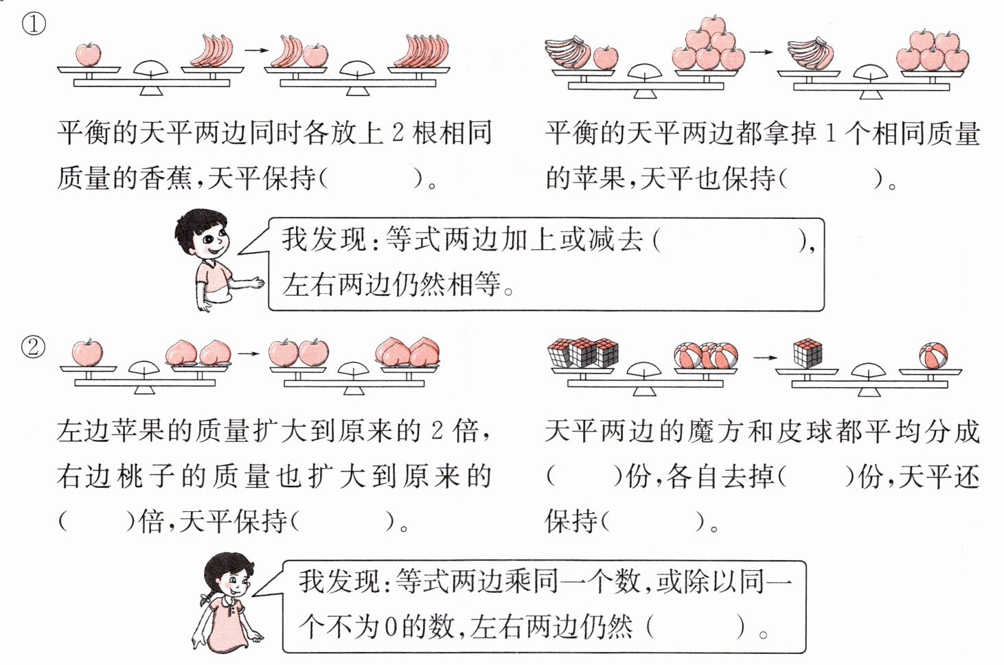 ④图中天平左边是$2$个$x$克,天平右边是$80$克,天平处于平衡状态,说明左右两边的质量相等。