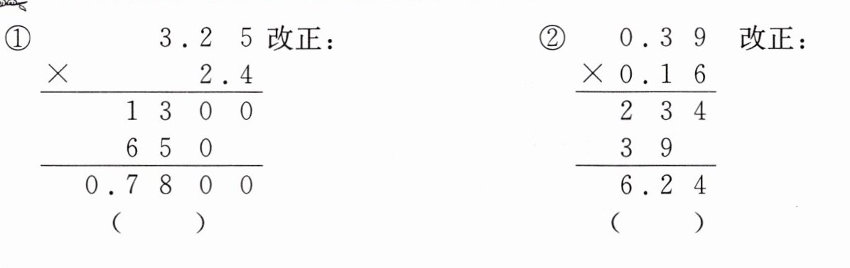 ②本题可根据小数乘法的计算方法来验证该算式是否正确。