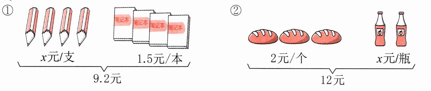 ①由图可知,4支铅笔和4本笔记本,总价为9.2元。
