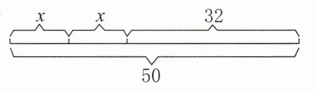 ①由图可知,$2$个$x$与$32$的和是$50$,据此列出方程即可。