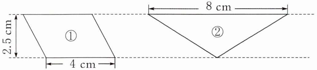 答案:图形①的面积是$10cm^2$,图形②的面积是$10cm^2$,它们的面积相等。