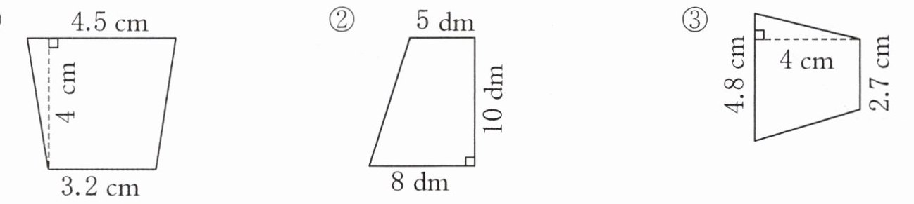 ① (4.5+3.2)×4÷2=15.4(cm²)