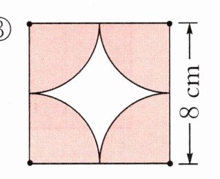 解析:本题主要考查圆的面积和周长公式以及通过图形变换求面积。对于①,已知半圆的直径,可根据圆的面积和周长公式求出半圆的面积和周长;对于②,涂色部分是圆环,可根据圆环面积公式求解;对于③,可通过正方形的面积减去四个四分之一圆的面积(即一个整圆的面积)得到涂色部分的面积。