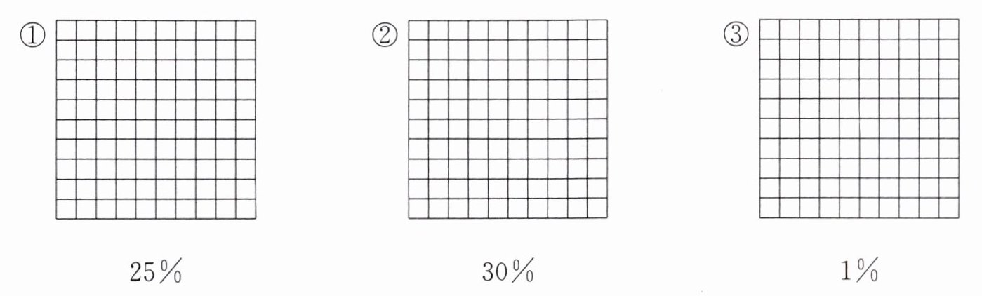 2 在方格纸上按下面的百分数涂出相应数量的方格。
