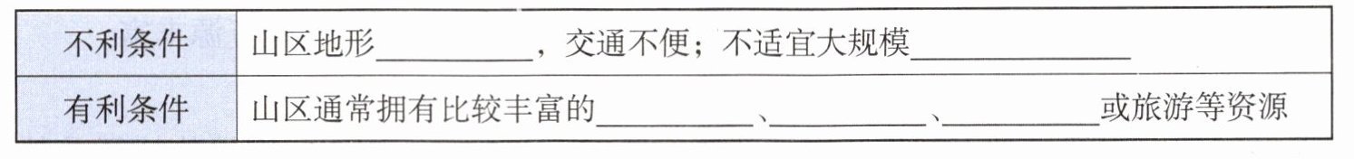 4. 填表,比较山区面积广大对我国发展的利弊条件。