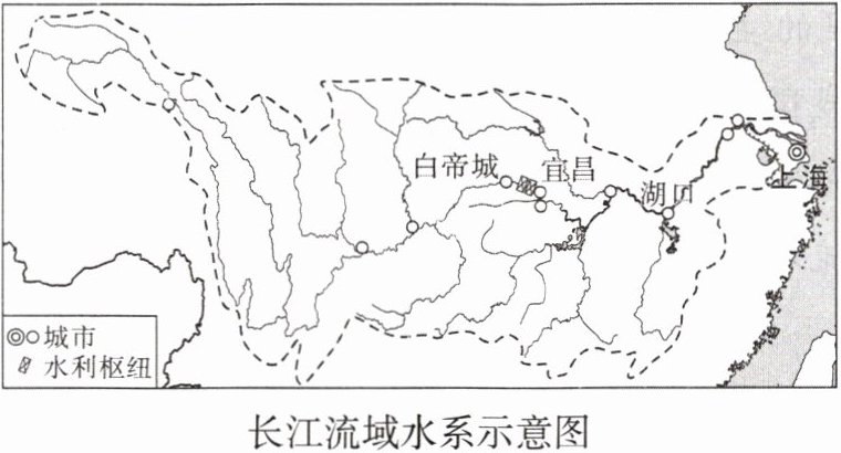 古诗句“朝辞白帝彩云间,千里江陵一日还”,描述了长江干流某河段当时的特点。读长江流域水系示意图,回答2—4题。