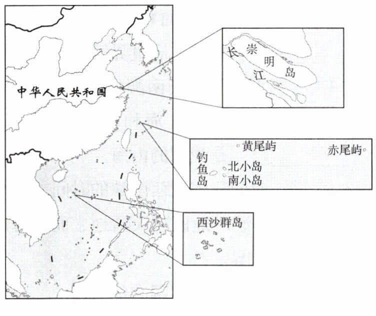我国拥有辽阔的海域,分布着众多岛屿。读中国部分岛屿分布示意图,回答 7、8 题。