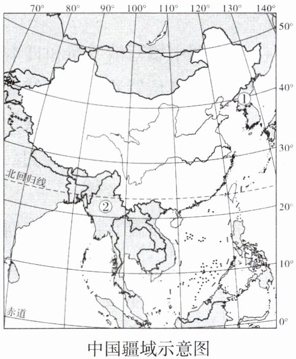 4. 图中①②为我国邻国,它们分别是(