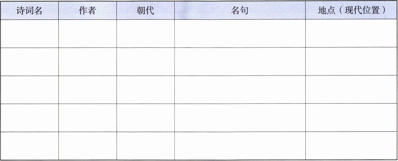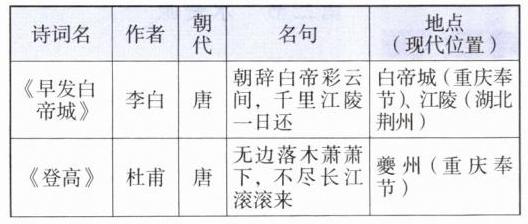 【提示】根据所填诗词的地点,在长江干流上绘出大概位置即可。
