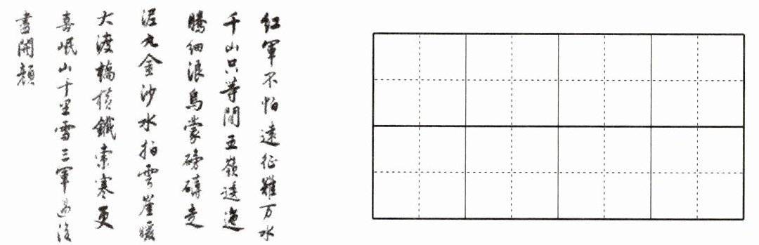 1. 请从下面的字帖中选出八个汉字,并用正楷将它们写在下面的田字格中。