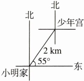 )。A.少年宫在小明家北偏东 $ 55 ^ { \circ } $ 方向,2 km 处