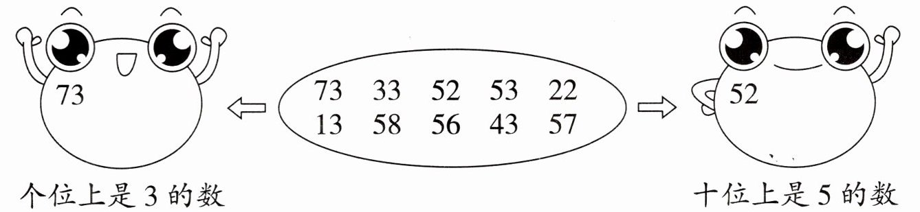 个位上是 3 的数:33 53 13 43 十位上是 5 的数:53 58 56 57