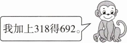 2. 解:设这个数为$y$,根据题意可得$y+318 = 692$,则$y=692 - 318=374$。
