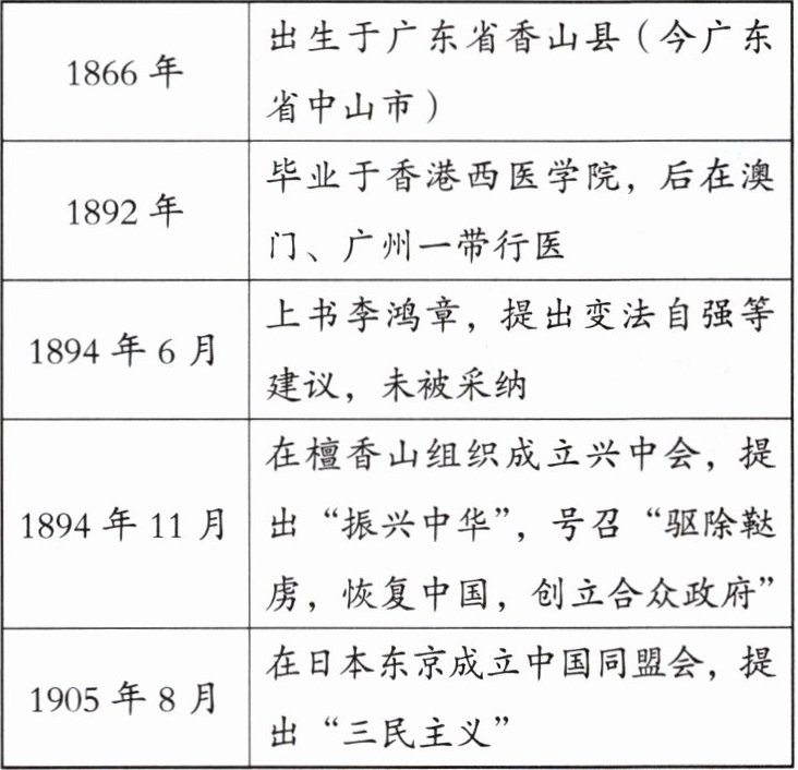 |1894年11月|在檀香山组织成立兴中会,提出“振兴中华”,号召“驱除鞑虏,恢复中国,创立合众政府”|