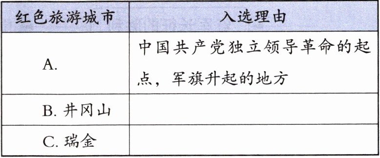 某班历史兴趣小组就“江西红色旅游城市”开展评比活动,邀请你一起参与活动。