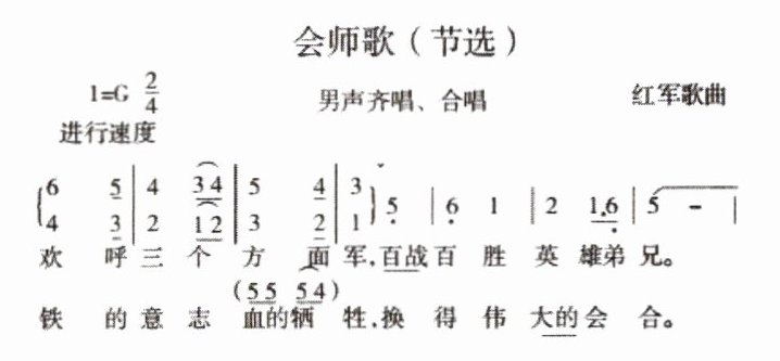 红色歌曲是革命实践的真实写照。《会师歌》见证了中国工农红军在甘肃转战的历史。