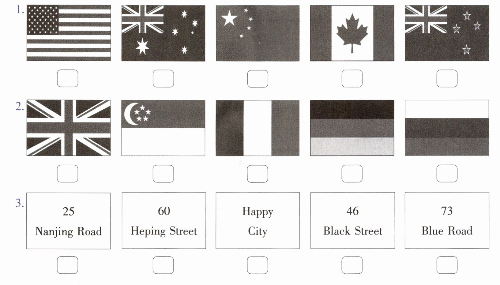 一、Listen and order. 听朗读,用 A、B、C、D、E 给下列每组图片排序。