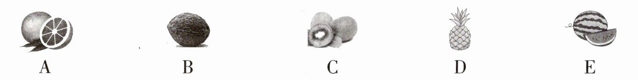 三、选出句子中提到的水果,将图片序号填在括号中。