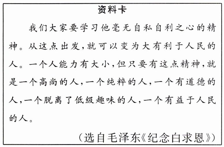 12. 小岩同学读完《红岩》后,认为其中许多人物都是《纪念白求恩》中说到的“大有利于人民的人”。请结合资料卡和与成岗相关的故事情节加以证明。