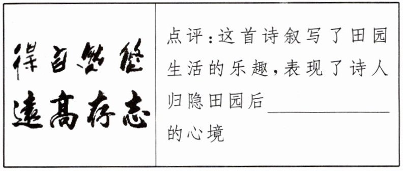 4. (2025·朔州期末)赏读诗句“问君何能尔? 心远地自偏”,在空缺处填入恰当的点评。(3 分)