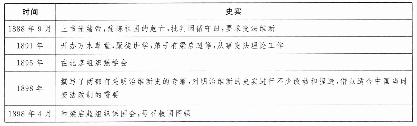 材料二:康有为生平大事记(部分)。