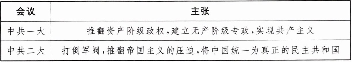 7. (2025·阳泉市期末)下表是对中共一大、中共二大相关内容的整理。两次会议主张的变化说明中国共产党(
